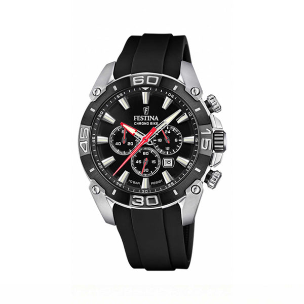 Mehanizem: Kvarčni, Analogna Premer ure: 45 mm Vodotesnost: 100M Material ohišja: Nerjaveče jeklo Material pasu: Guma Steklo: Mineralno Barva ohišja: Srebrna Barva pasu: Črna Barva številčnice: Črna
