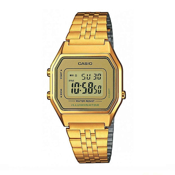 Mehanizem: Kvarčni, Digitalna Premer ure: 29 mm Vodotesnost: Osnovna Material ohišja: Umetna masa Material pasu: Nerjaveče jeklo Steklo: Akrilno Barva ohišja: Zlata Barva pasu: Zlata Barva številčnice: Zlata Kolekcija: VINTAGE