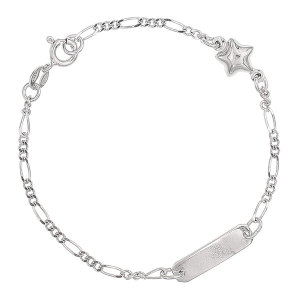 Otroška srebrna zapestnica s lpoščico dolžine 1,8 cm.